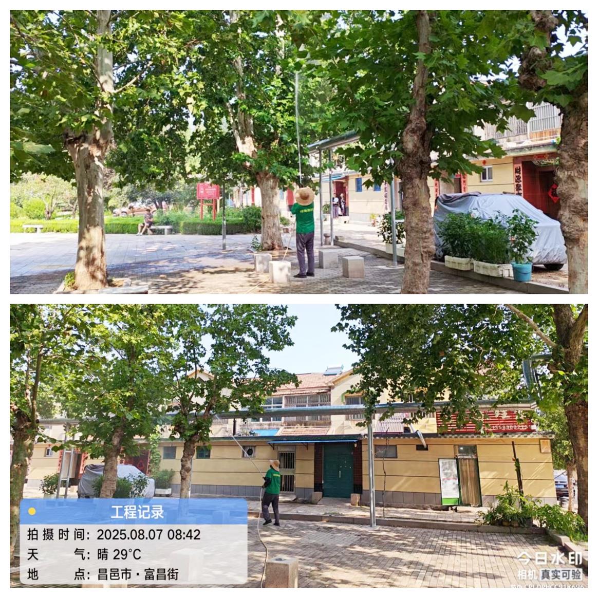 近日,养护管理部对西苑绿地内法桐喷洒药物进行病虫害防治,保证苗木夏季长势。