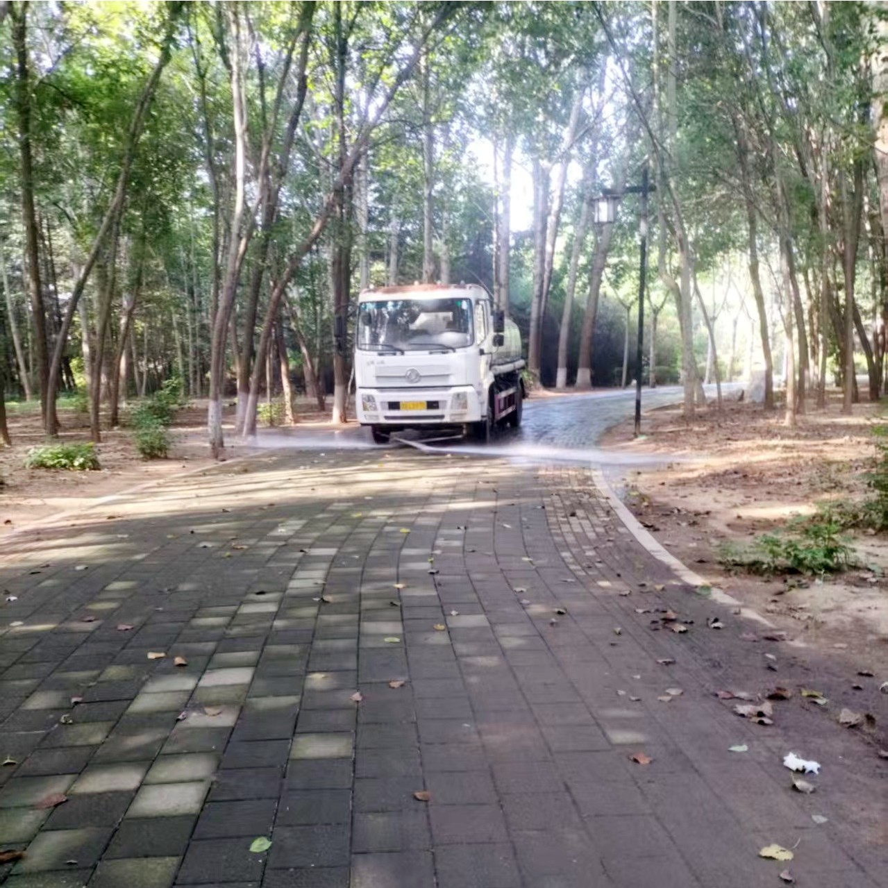 近日,公园管理部出动洒水车对潍水风情湿地公园进行喷水降燥处理,保持游园环境湿润,消除干旱天气下的安全隐患。