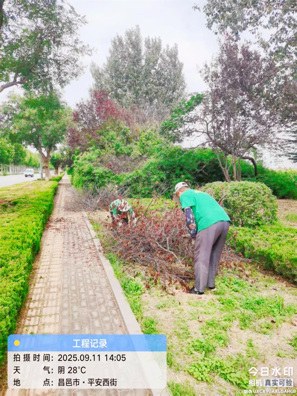 近日,养护管理部对平安街绿地内苗木枯枝、断枝进行清理,确保道路环境优美。