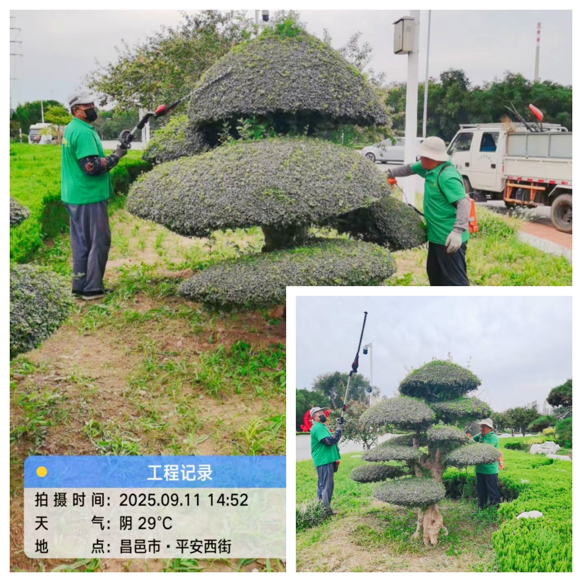 近日,养护管理部对平安西街绿地内造型植物进行精细化修剪,确保修剪后的造型饱满圆润、层次分明,保证绿地景观效果。
