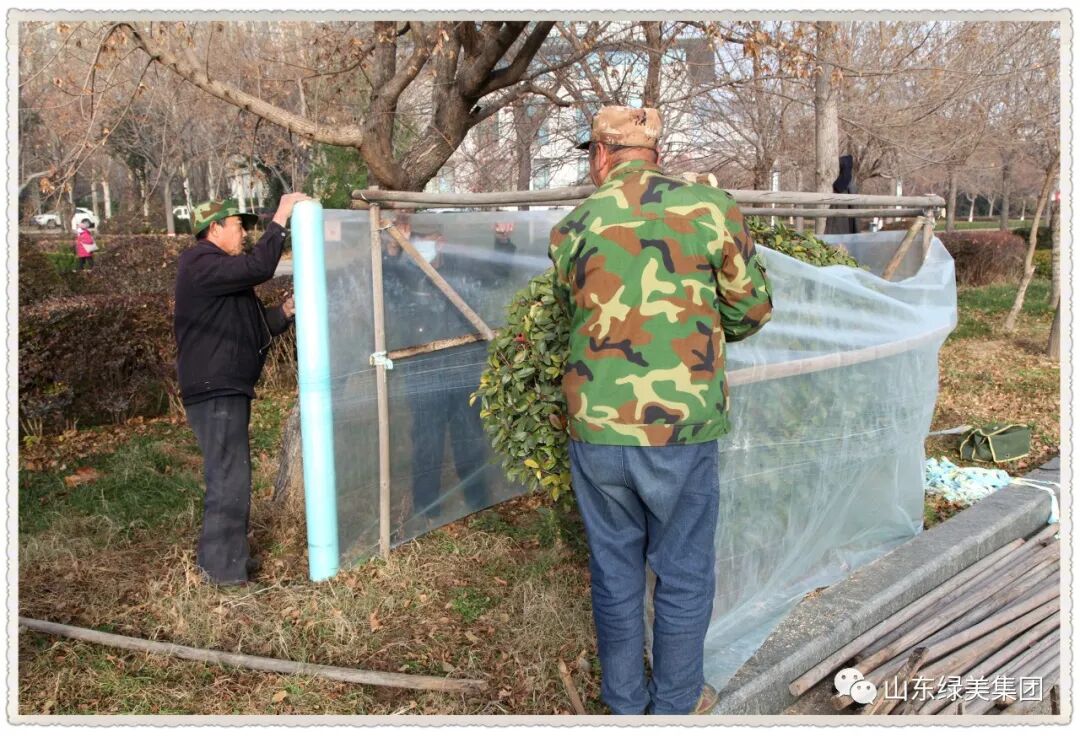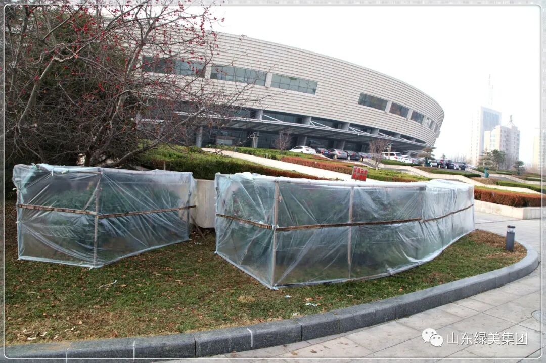 为全面细致做好我市冬季园林植物养护管理工作,绿美集团按照科学、精细、实用的原则,根据园林植物不同的习性特点及周围环境,及时采取各式“保暖术”为园林植物防寒保温,确保安全越冬。