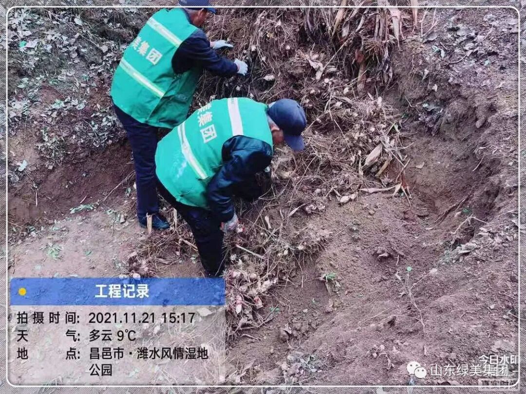 随着气温逐渐降低,绿美集团对潍水风情湿地公园内的美人蕉进行了防寒保护,将美人蕉根茎挖出,深埋储存过冬,准备来年挖出再次种植。