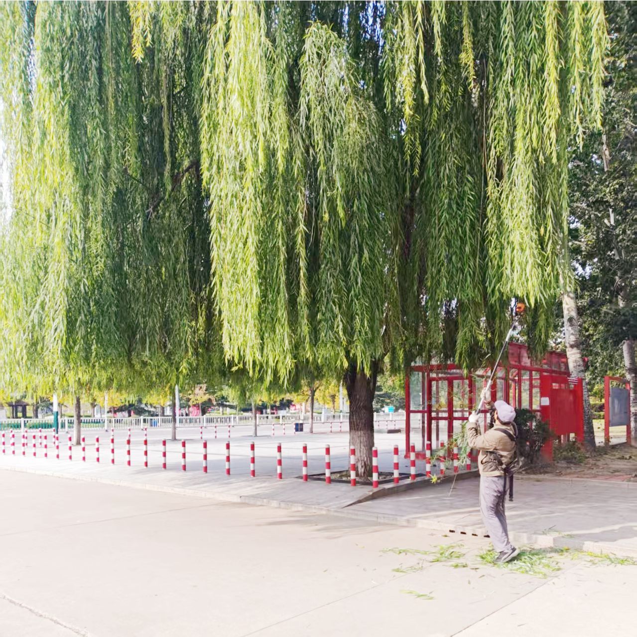 近日,养护管理部对奎聚路垂柳枝条进行统一修剪,修剪至同一高度,改善景观效果,方便市民通行。