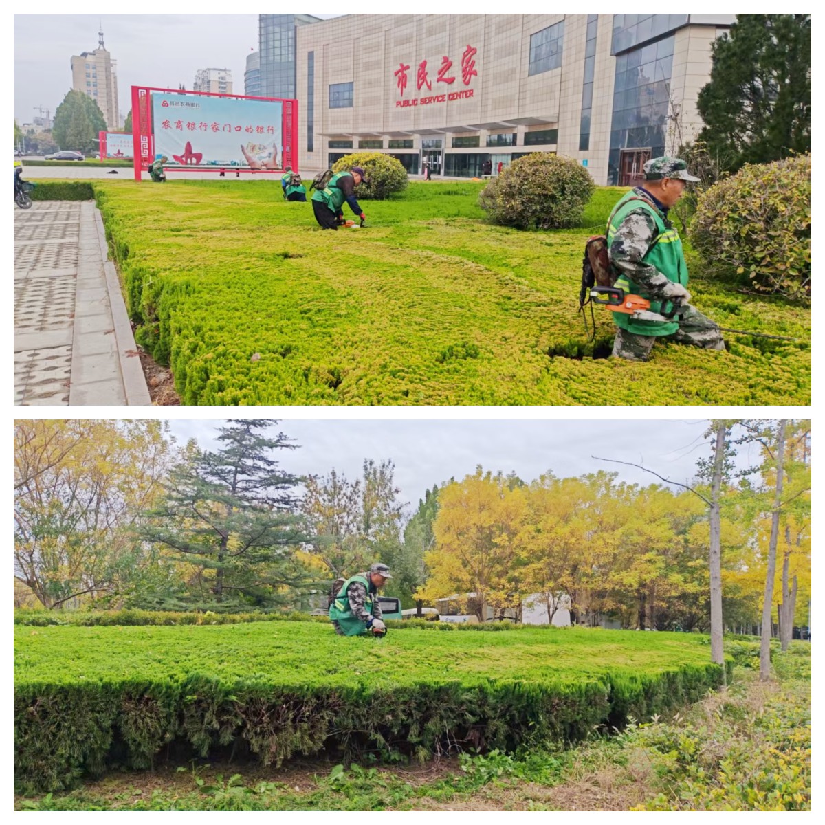 近日,养护管理部对市民之家绿地内绿篱进行精细化修剪,保证修剪后的绿篱横平竖直、造型流畅,提升绿地景观效果。