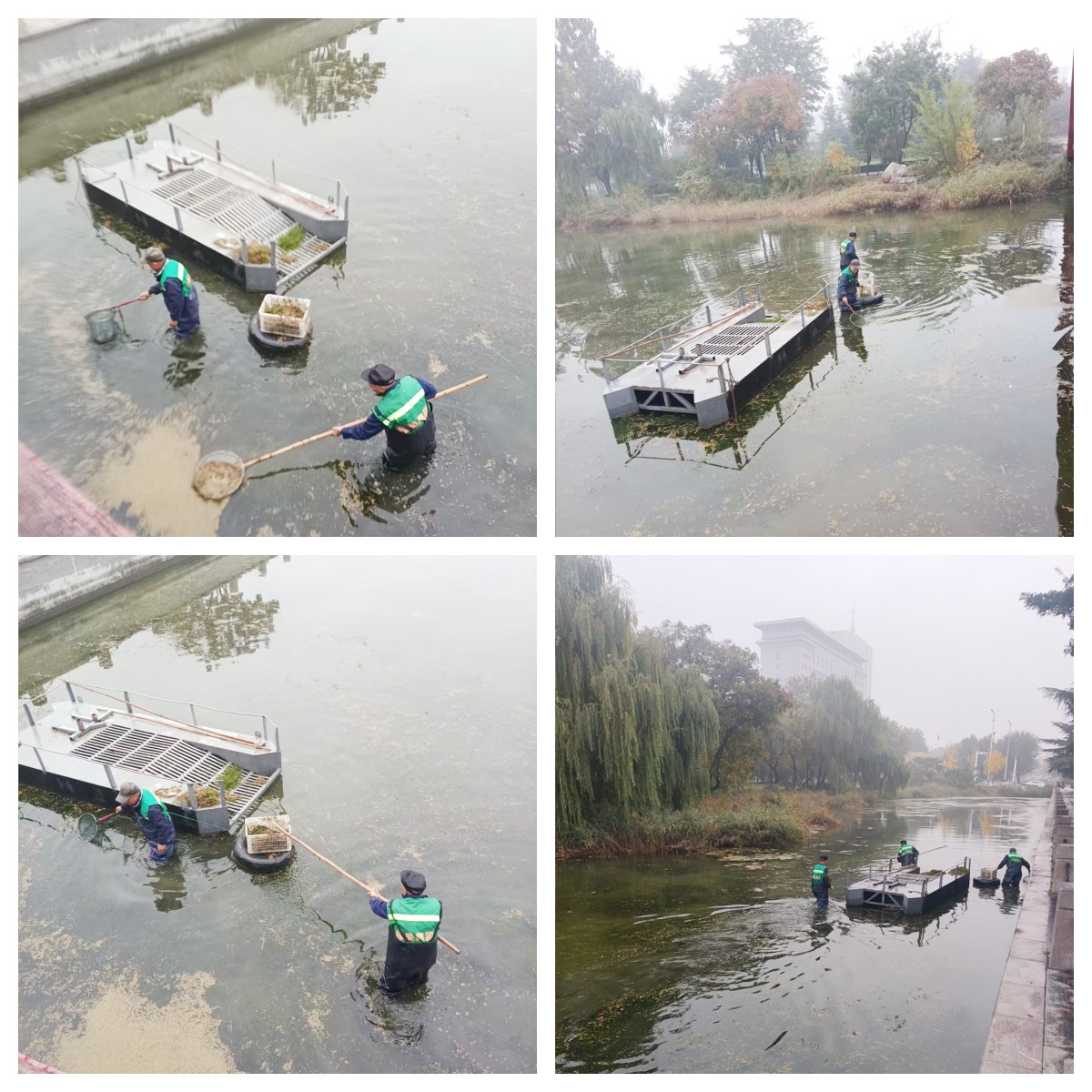 近日,养护管理部对平安街水系内杂物、落叶等垃圾进行打捞清理,改善水体环境,维护水系景观效果。