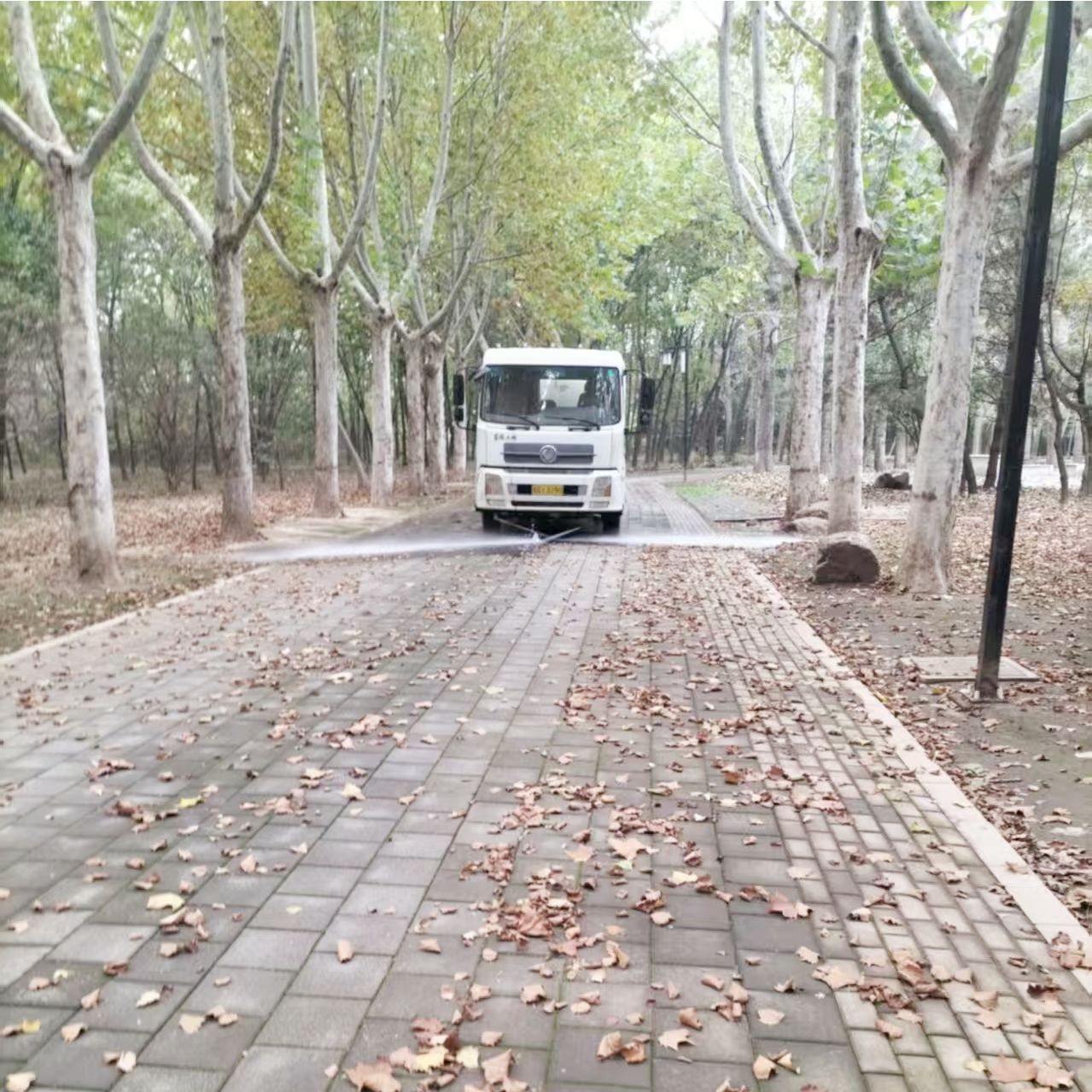 进入秋季,苗木进入落叶期,对此,公园管理部及时出动洒水车对潍水风情湿地公园内路面进行冲刷,以维护整洁的游园环境。