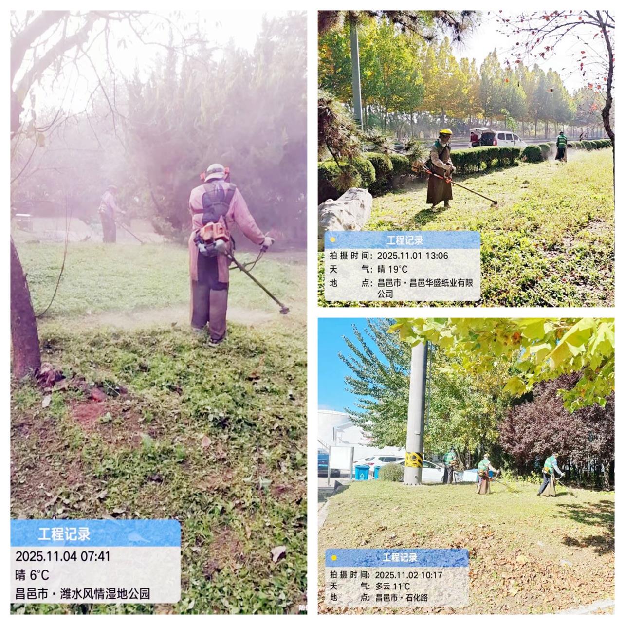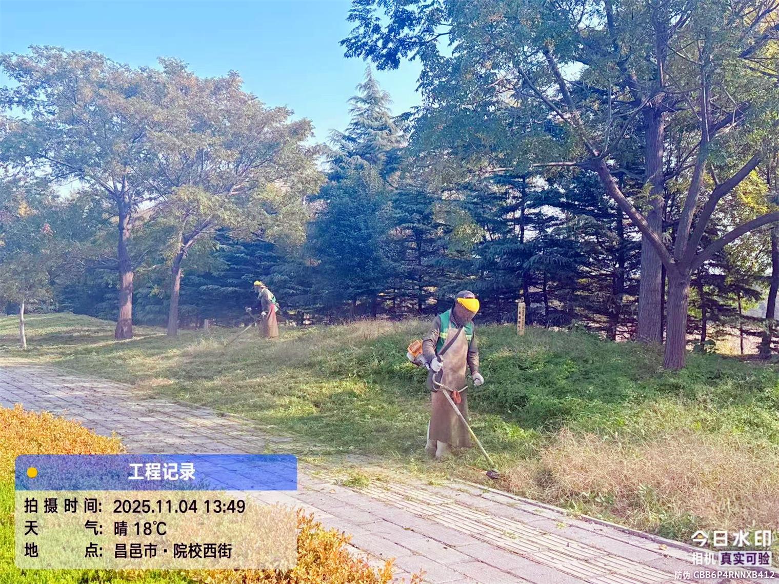 打草除杂工作延续“机械为主、人工为辅”模式:先用打草机械将大面积草坪及杂草修剪至同一高度,再由养护人员对绿篱内、灌木根部等机械盲区的杂草逐一拔除,从源头减少杂草与植被争夺养分,降低冬季低温环境下病虫害滋生和越冬风险。