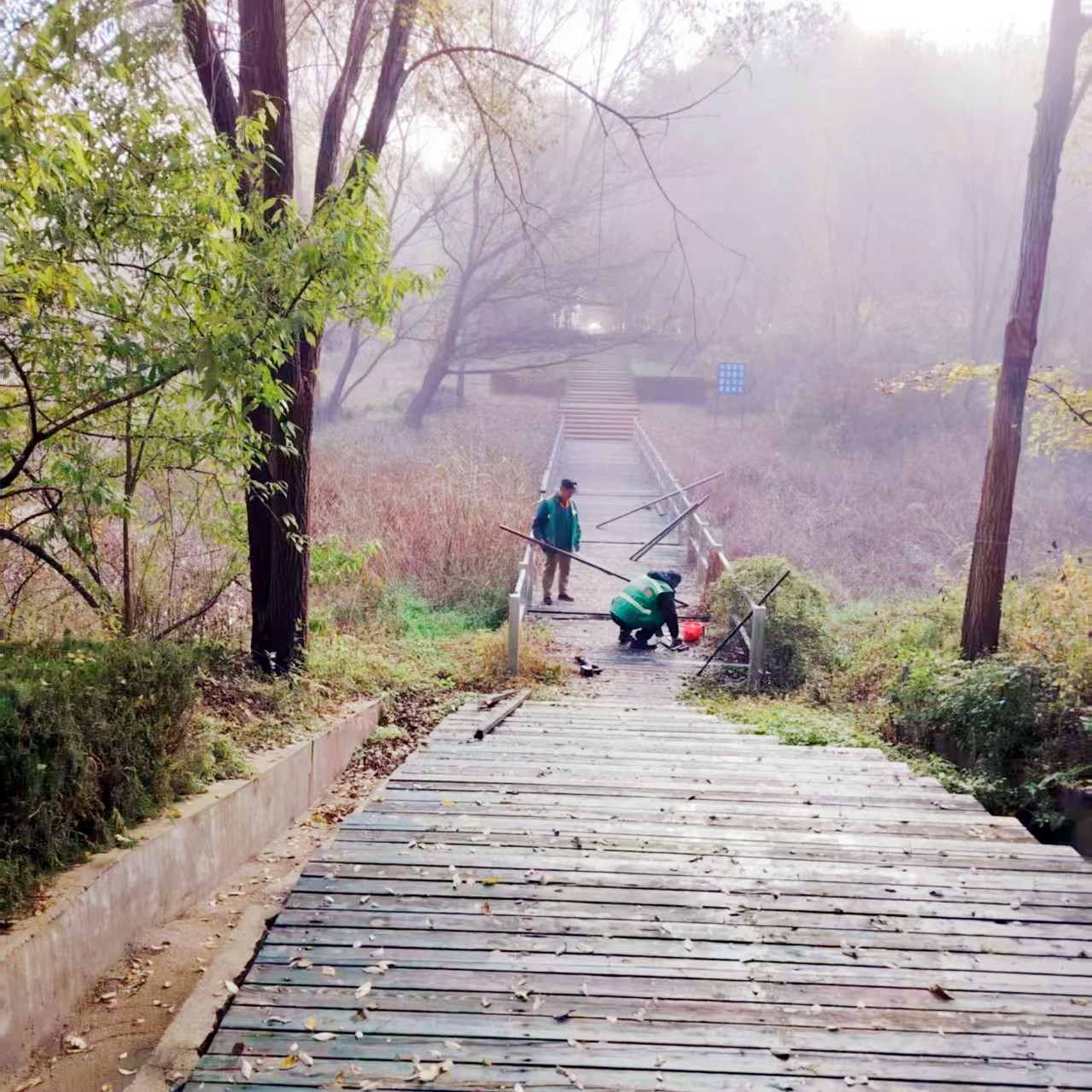 近日,公园管理部对潍水风情湿地公园水系木栈道进行维修加固,消除安全隐患,方便市民游园。