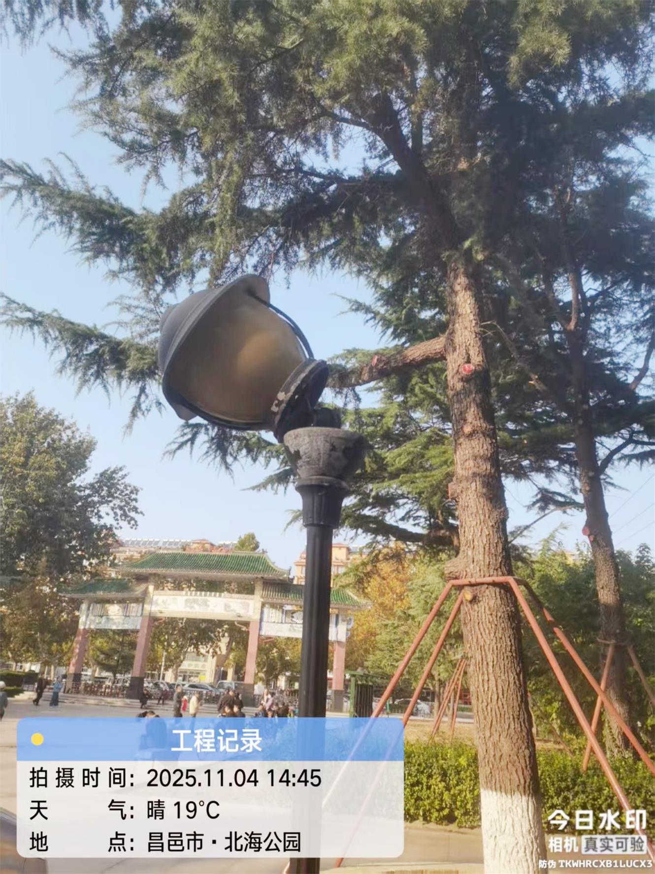 近日,公司技术人员对北海公园景观灯进行维修保养,保证夜间照明正常使用,方便市民游园。